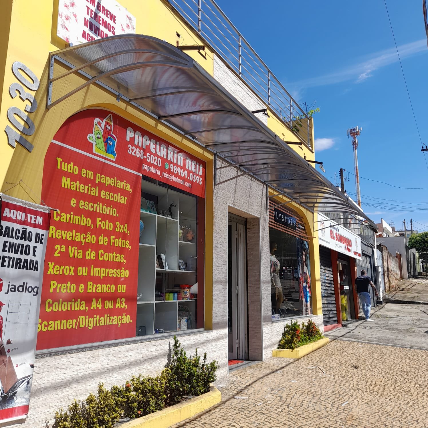 Além disso, a cobertura ajuda a proteger vitrines contra sol e chuva.